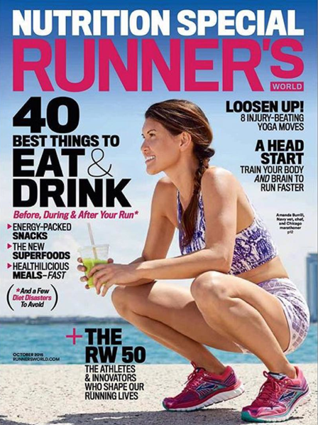Her thoughts on the Runner’s World cover–“My friend saw the Runner’s World Magazine at Whole Foods and sent me a snapshot and bought my first copy! That’s what good friends are for! I was blindsided because I thought this wouldn’t be on stands for a few more days! I like exclamation points!”